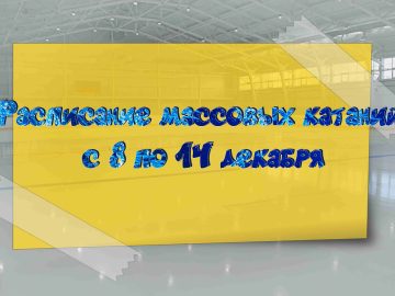Расписание массовых катаний на ледовой арене. 8 ноября СубботаСеансы13:00 — 14:0019:00 — 20:009 ноября ВоскресеньеСеансы13:00 — 14:0015:00 — 16:0017:00 — 18:0019:00 — 20:00