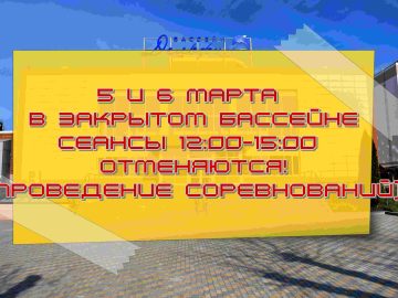 6, 8 и 9 декабря сеансы в закрытом бассейне с 12:00 до 15:00 отменяются!