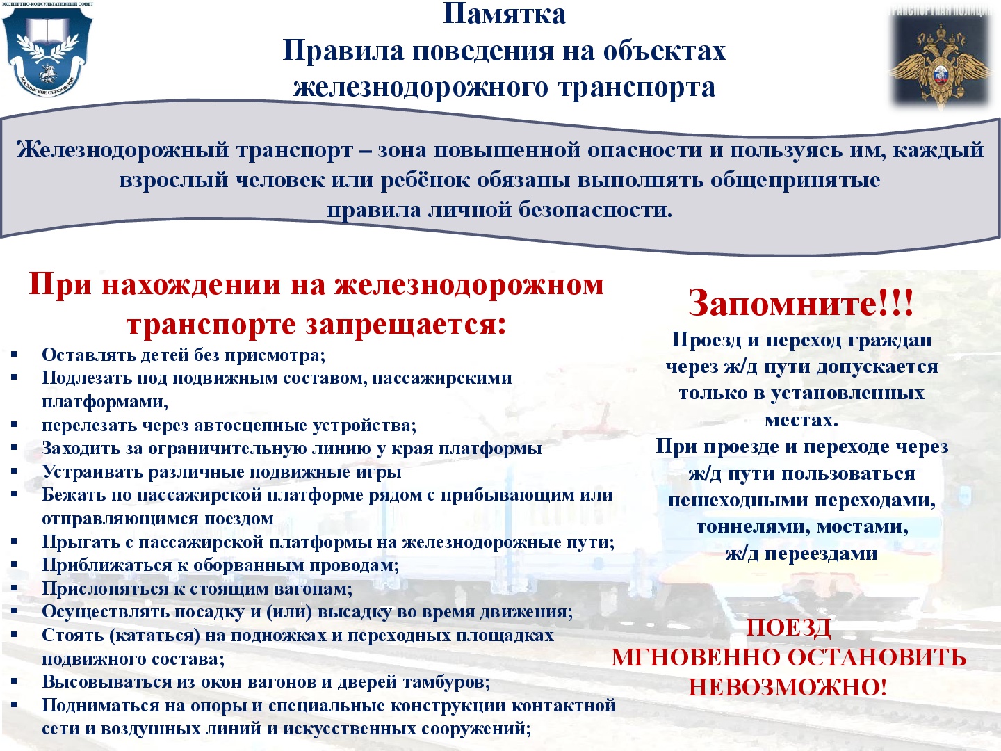 - не оставлять детей без присмотра вблизи железнодорожных путей; — запрещать детям находиться на железнодорожных узлах, развязках и т.п., кататься на крышах, подножках, переходных площадках вагонов;