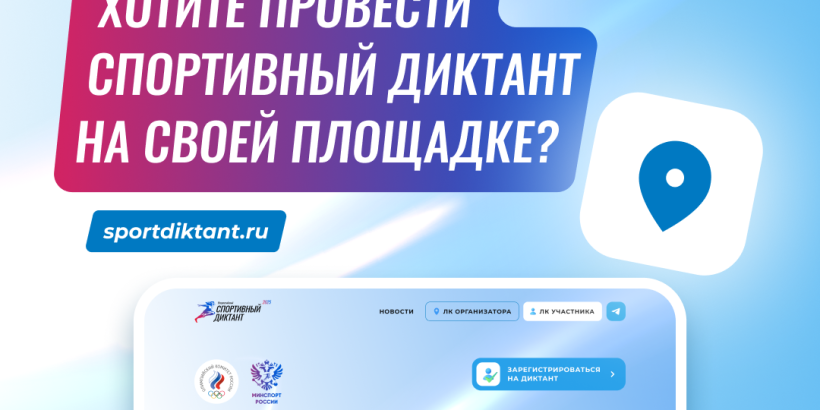 Для проведения Спортивного диктанта зарегистрированы уже более 400 площадок. Если хотите провести диктант у себя – оставляйте заявку на официальном сайте https://sportdiktant.ru/ , станьте частью большого спортивного события!