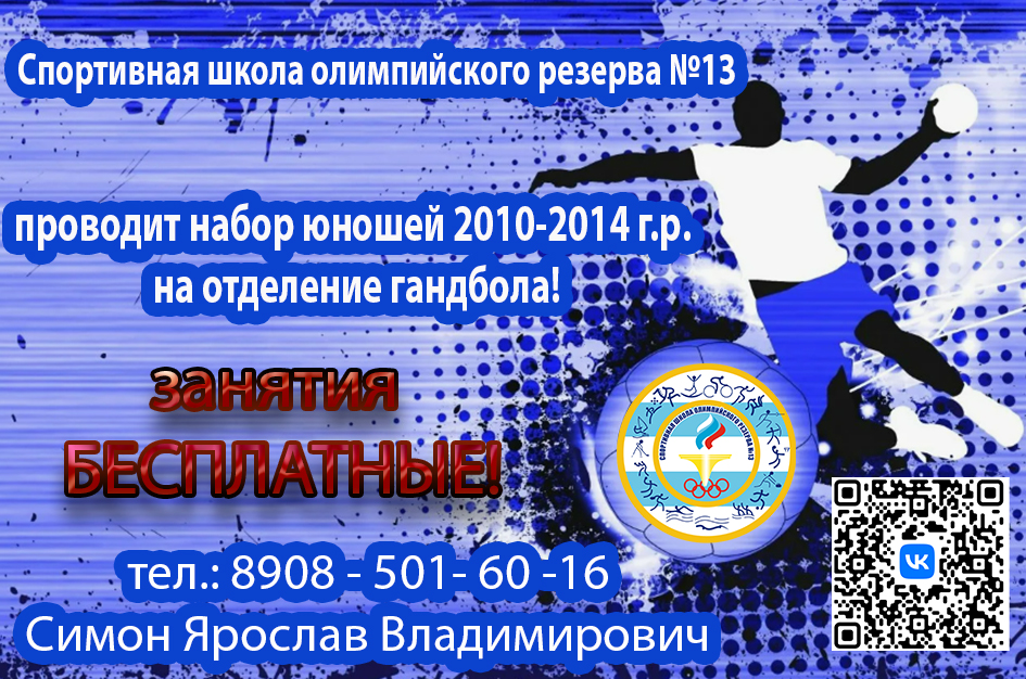 Спортивная школа олимпийского резерва №13 объявляет набор юношей 2010-2014 года рождения на отделение гандбола!