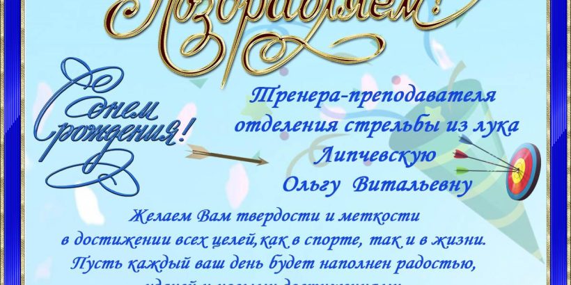Поздравляем с Днём рождения тренера-преподавателя отделения стрельбы из лука Ольгу Липчевскую! Опубликовано 29 Октябрь, 2025 от Igor Навигация по записям « Поздравляем нашего чемпиона!Расписание сеансов массовых катаний на 29 октября: »