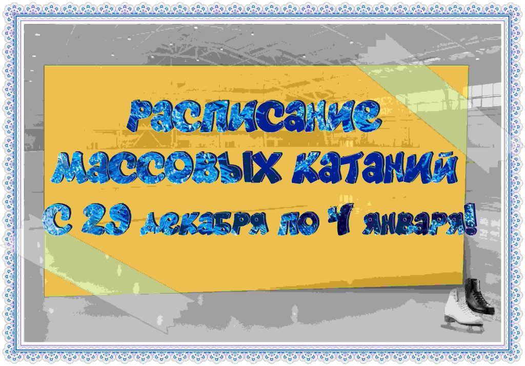 Расписание сеансов массовых катаний с 29 декабря по 4 января