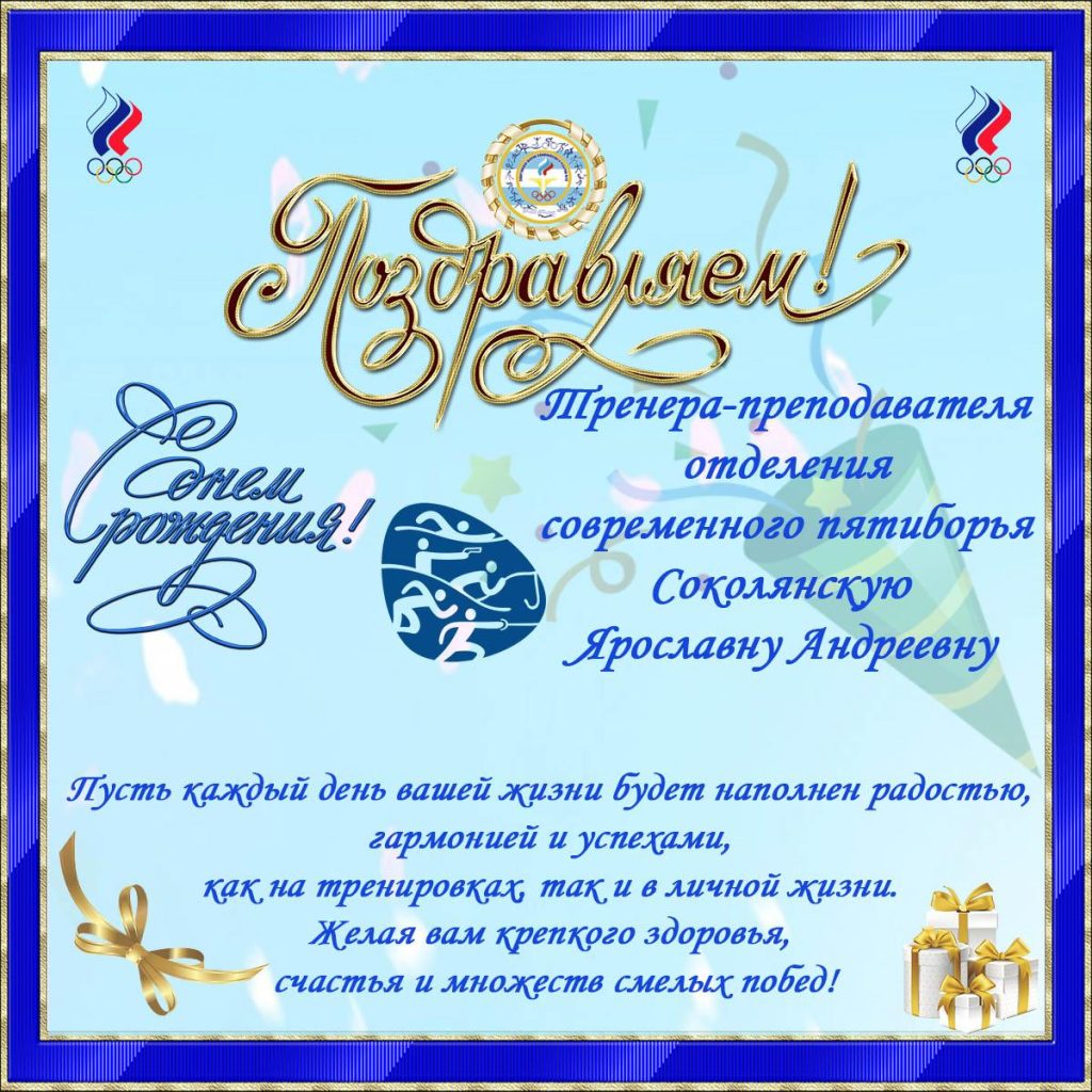 Поздравляем с Днём рождения тренера-преподавателя отделения современного пятиборья Ярославну Соколянскую!