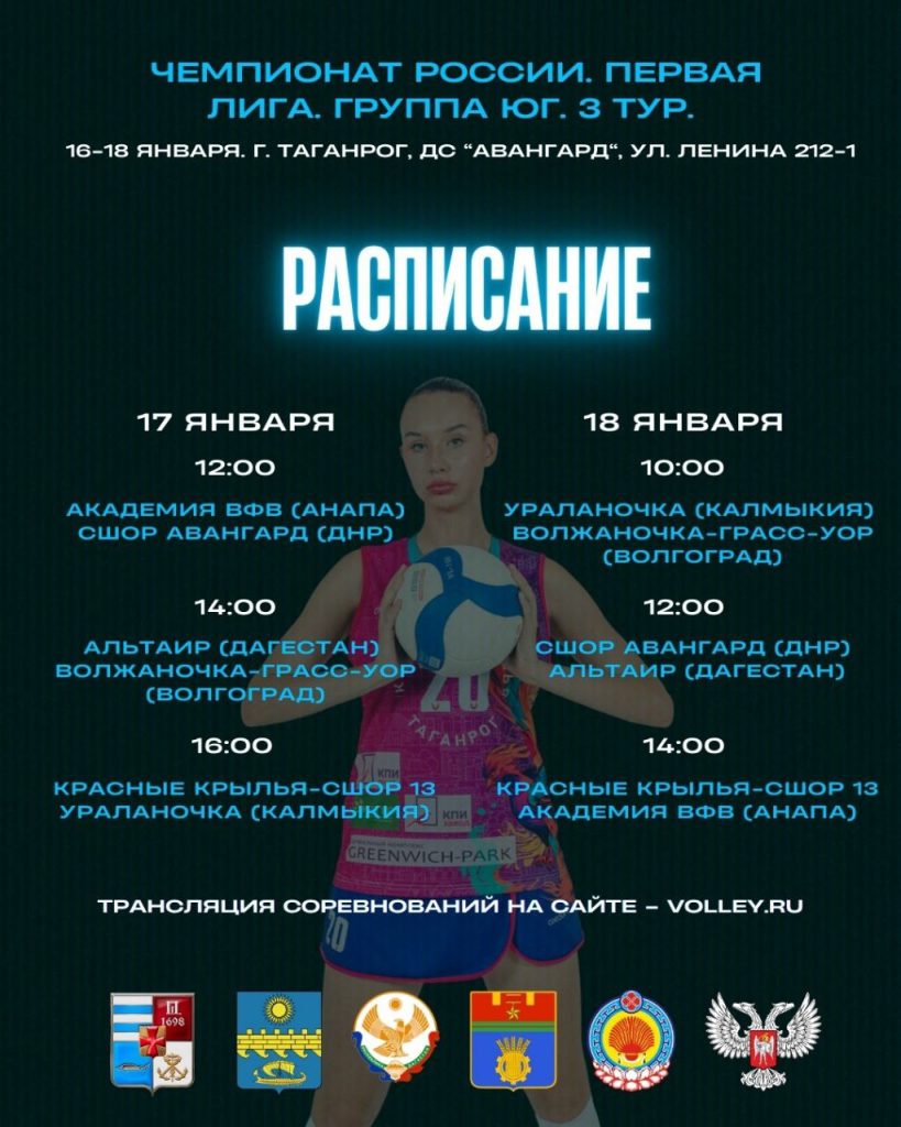 17-18 января состоялся 3-й тур чемпионата России по волейболу в 1-й лиге, Зона «Юг»!