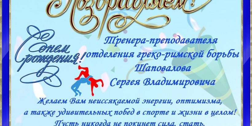 Поздравляем с Днём рождения тренера-преподавателя отделения греко-римской борьбы Сергея Шаповалова! Опубликовано 16 Февраль, 2026 от Igor Навигация по записям « Серебро на первенстве России по тхэквондо ВТФ среди юниоров и юниорок 15–17 лет!РАСПИСАНИЕ СЕАНСОВ с 16 по 22 февраля »