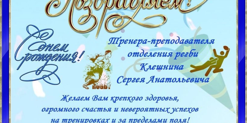 Поздравляем с Днём рождения тренера-преподавателя отделения регби Сергея Клешнина! Опубликовано 10 Март, 2026 от Igor Навигация по записям « Расписание сеансов массовых катаний с 10 по 15 мартаПоздравляем с Днём рождения Заслуженного тренера России, тренера-преподавателя отделения стрельбы из лука Василия Власенко! »