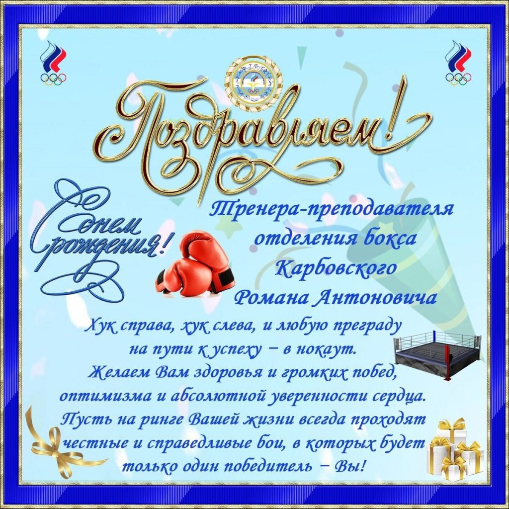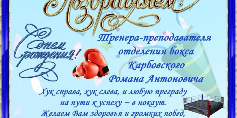 Поздравляем с Днём рождения тренера-преподавателя отделения бокса Романа Карбовского! Опубликовано 22 Апрель, 2026 от Igor Навигация по записям « Первенства Ростовской области по кёрлингу 2026 года среди юношей до 19 лет и среди девушек до 19 лет«Открытый кубок Таганрогской федерации плавания» по плаванию »