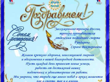 Поздравляем с Днём рождения заслуженного тренера России, тренера-преподавателя отделения подводного спорта Гундарева Сергея Викторовича!